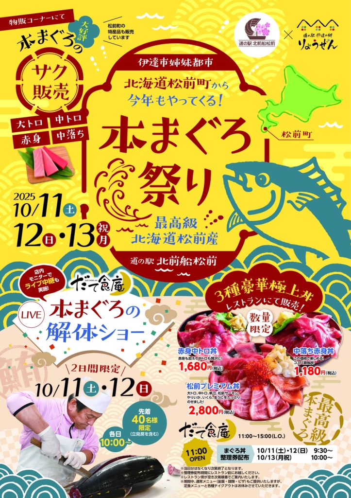 10/11(土)~13(月・祝)の3日間、「北海道松前町 本まぐろ祭り」を開催します!
